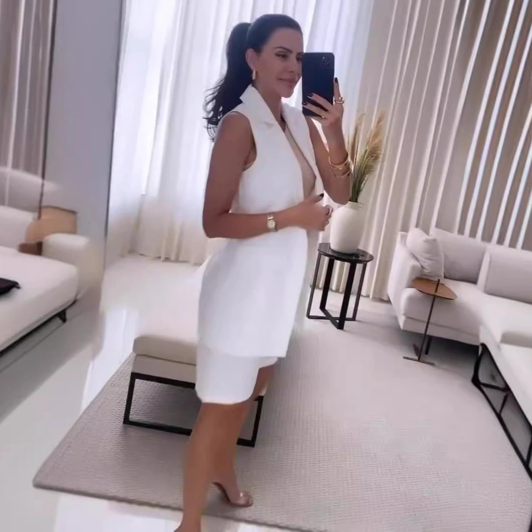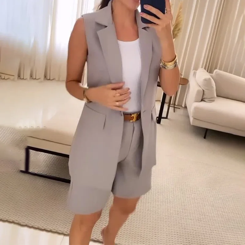 Summer 2025 Elegant Shorts Sets Lapel Sleeveless Blazer and Half Pants Two Piece Suits for Female Streetwear Women's Clothing